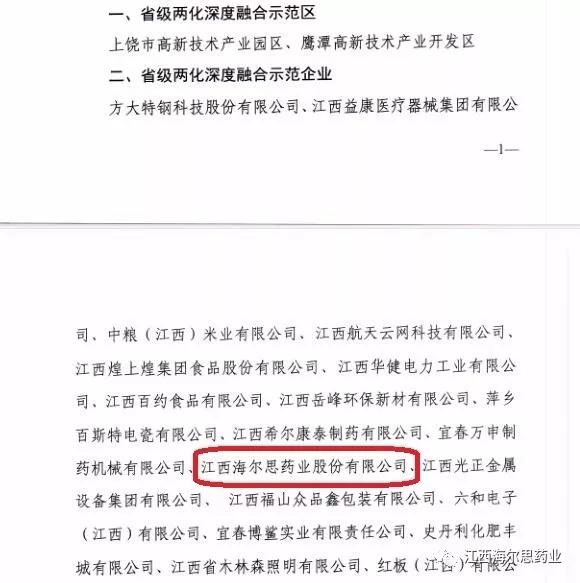 日前,從省工信委傳來好消息:經(jīng)專家組綜合評審,江西海爾思藥業(yè)股份有限公司獲得“省級兩化深度融合示范企業(yè)”榮譽(yù)稱號。